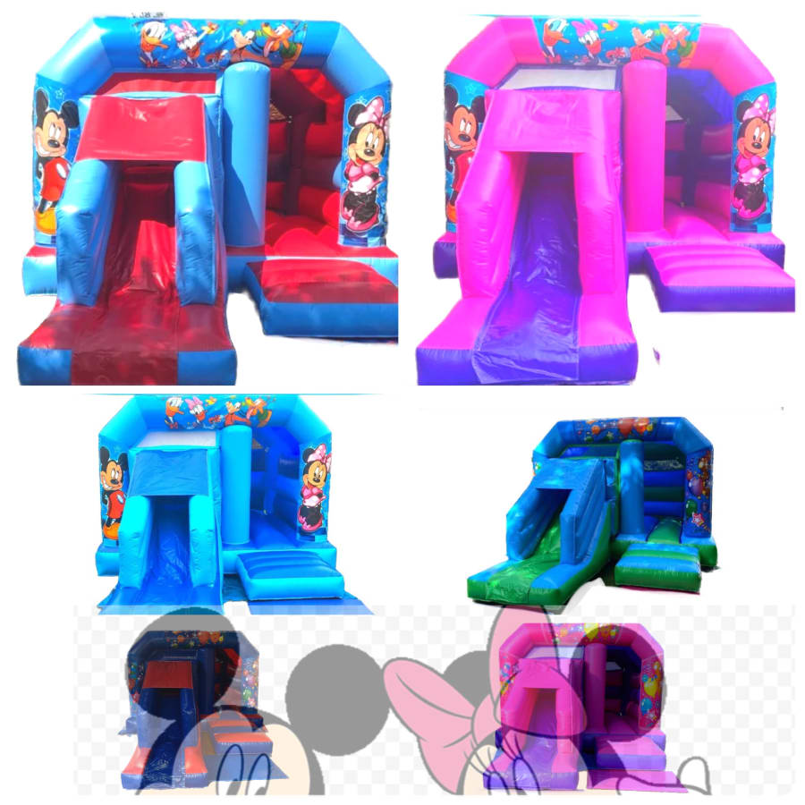 Step into a world of Disney fun with our Mickey & Minnie Bounce & Slide Bouncy Castle – a vibrant inflatable that brings beloved characters to life!