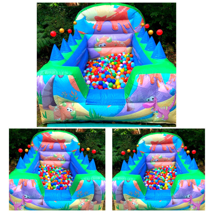 The bright, prehistoric-themed artwork makes this air juggler ball pond a real party showstopper, whether it’s used on its own or as part of a larger play area with dinosaur soft play packages, bounce & slides, or our bouncy castle hire.