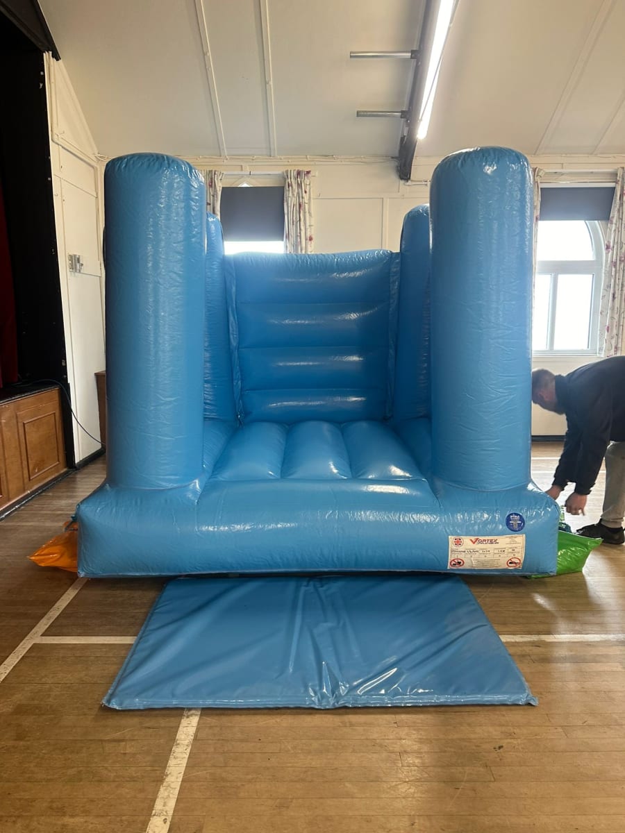 This compact Pastel Blue Micro Bouncy Castle is part of our Micro Bouncy Castles range, created for homes, halls, and even small gardens.