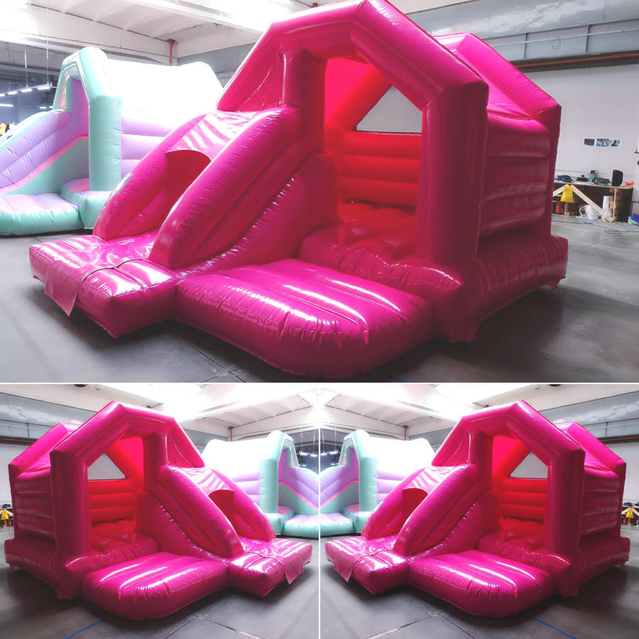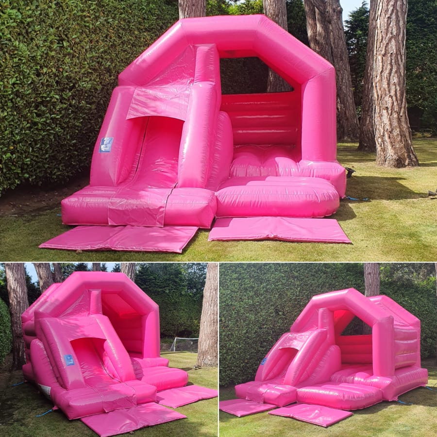 The Pastel Fuchsia Bounce & Slide is a bold and bright addition to our Pastel Bouncy Castles & Soft Play Hire collection.