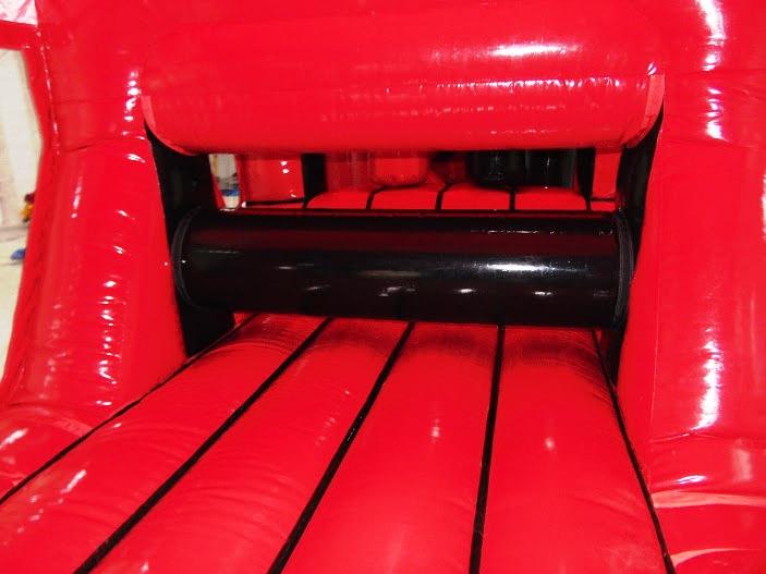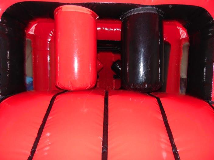 One of the standout features of this assault course is its safety-focused design. The netted side windows allow parents and supervisors to watch participants as they navigate through the challenges. This ensures visibility while allowing fresh air to circulate through the inflatable. The bright red and black colour scheme makes it an eye-catching centrepiece for any celebration, and its compact width allows it to fit into large gardens and event spaces with ease.