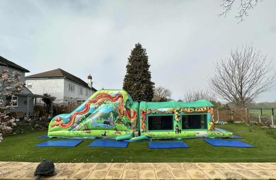 Every hire includes two electric blowers, appropriate extension leads and safety mats. Outdoors, the inflatable is pegged into grass as standard. For indoor bookings we secure it with sandbags to protect the floor and keep the unit stable. As with all BJ’s inflatables, we ask customers not to use face paint, glitter, balloon confetti, streamers, silly string or party poppers, as these can stain the material and affect future hires.