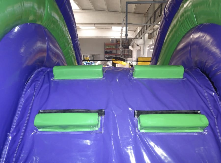 The obstacle course is secured safely by our experienced team during every install. For indoor venues, sandbags ensure stability without damaging flooring. As with all our inflatables, please avoid face paint, glitter, balloon confetti, streamers, silly string or party poppers, as these items can stain the surface.