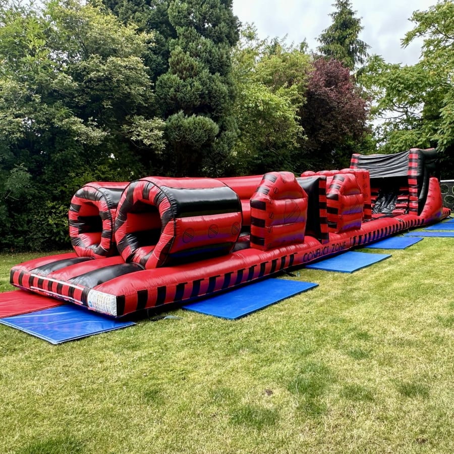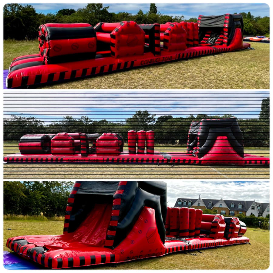 The obstacle course comes in 2 large parts with the slide being separate so you can hire them out simultaneously and even parallel if necessary!