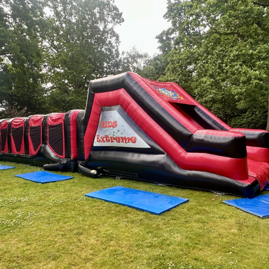The Extreme Family Assault Course is an action-packed inflatable that brings excitement to every event. Measuring an impressive 12ft wide, 50ft long, and 10.5ft high, this inflatable challenge is perfect for birthday parties, school fetes, corporate events, and community gatherings.