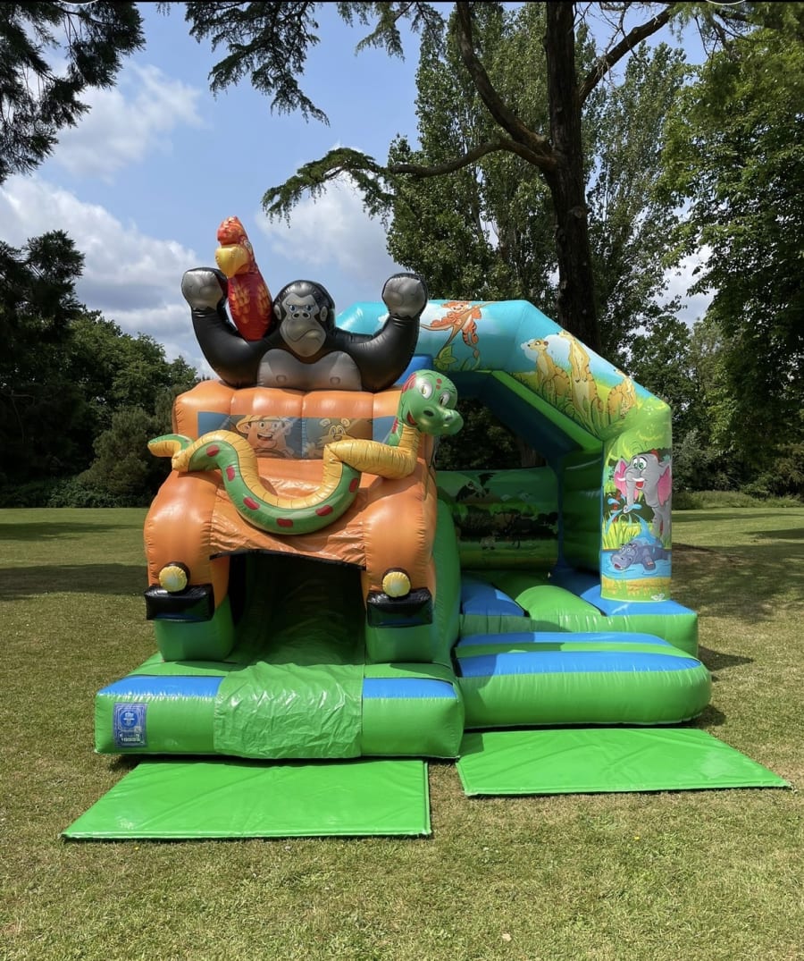 This unit sits within our themed bounce and slide options and is often chosen alongside other items from Bounce & Slide Hire. To build a fuller jungle setup for younger guests, many customers add items from Jungle Hire or create a separate toddler area using Soft Play Packages.