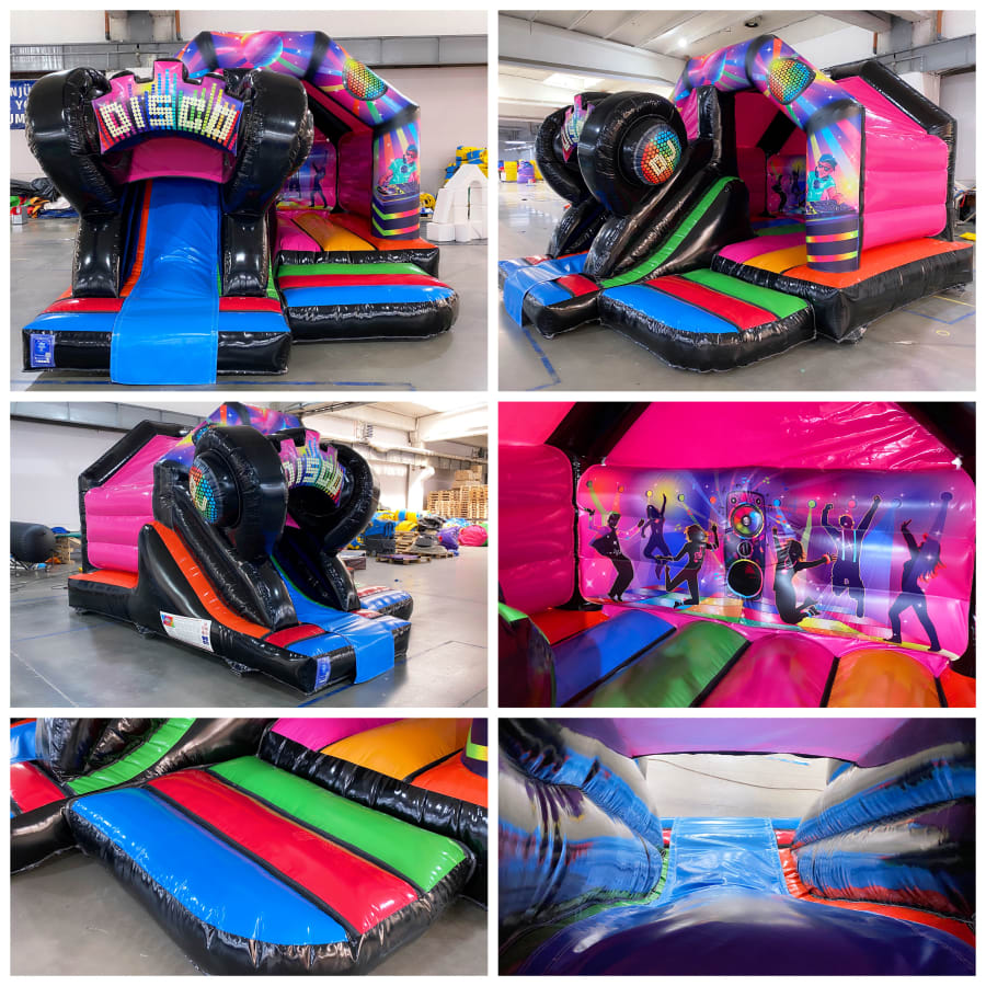 Introducing the Disco Club 3D front slide + PA speaker + disco light bouncy castle for hire