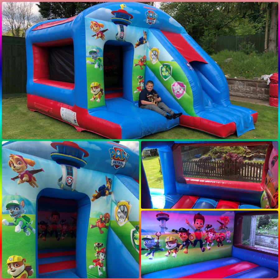 Get ready for an adventure with our officially designed Nickelodeon Paw Patrol bounce & slide inflatable. This 13ft W x 18ft L x 9.5ft H inflatable is perfect for birthday parties, school events, and family celebrations. Featuring stunning artwork, a sun/shower cover, and netted side windows for easy supervision, this bouncy castle combo guarantees non-stop fun.