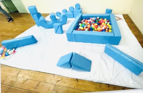 - Includes All soft play shapes, ball pond, double rocker