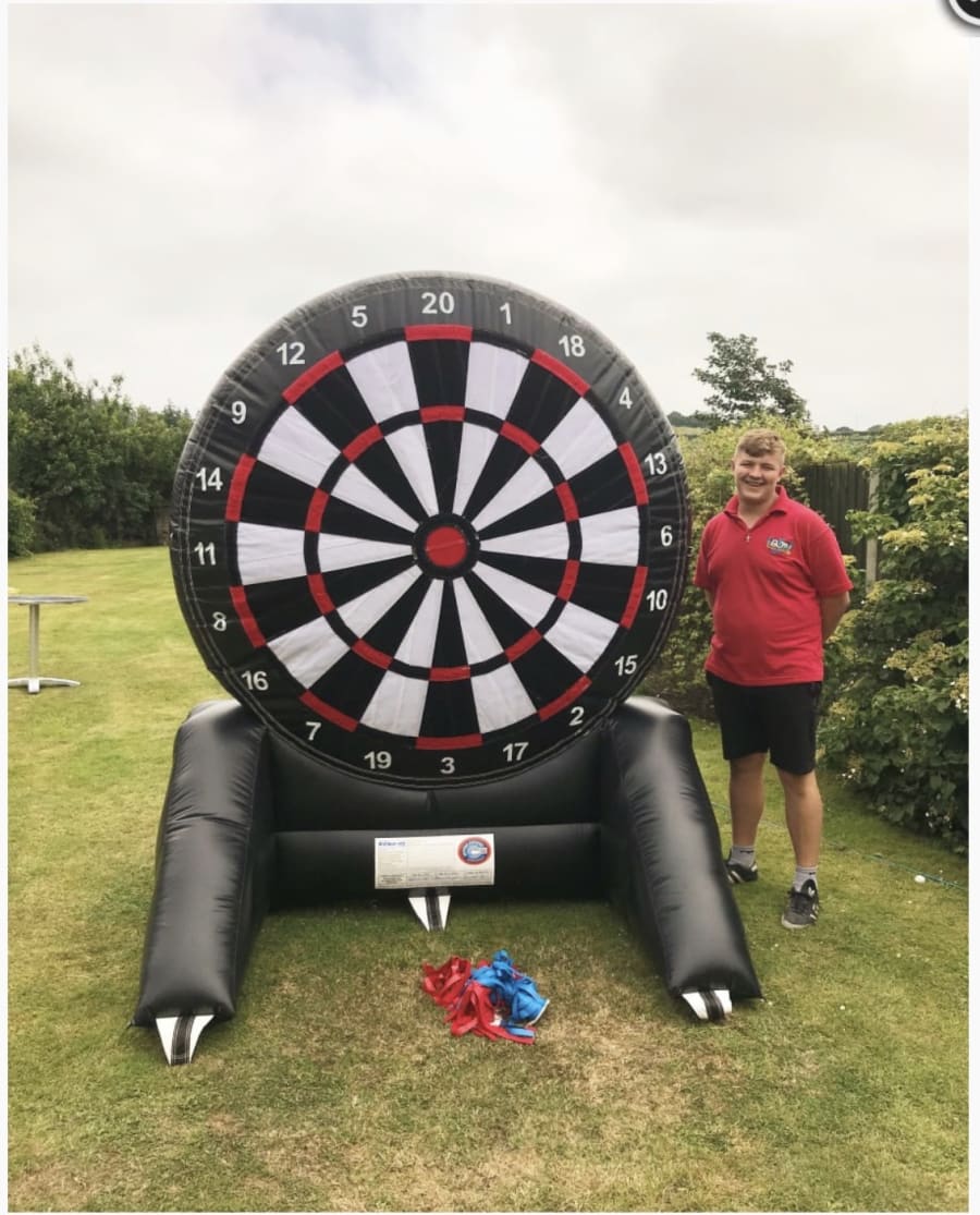 Step up and aim high with our Giant Inflatable Velcro Dart Board, a fantastic interactive game suitable for all ages. Measuring approximately 8ft tall, this soft dart board setup is perfect for family parties, school fetes, sports days, and corporate fun days across.
