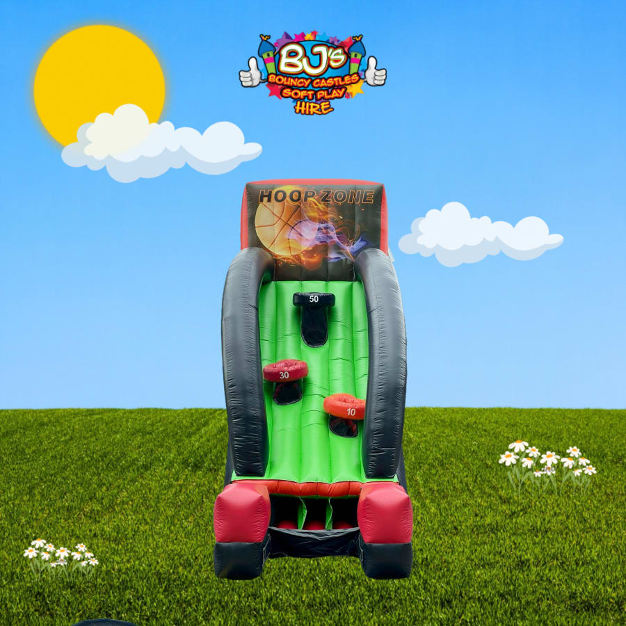 Designed for indoor or outdoor use, the Basketball Hoop Zone is suitable for school fun days, church events, corporate team building, or just casual fun in your back garden. It makes a fantastic stand-alone attraction or a great addition to any Fun & Games Hire or Bouncy Castle Range booking.