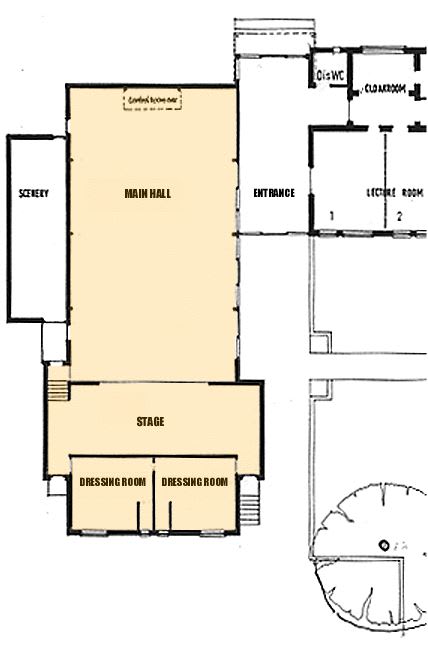 With a theatre stage with professional lighting and sound system; backstage dressing rooms with toilet; and a grand piano.