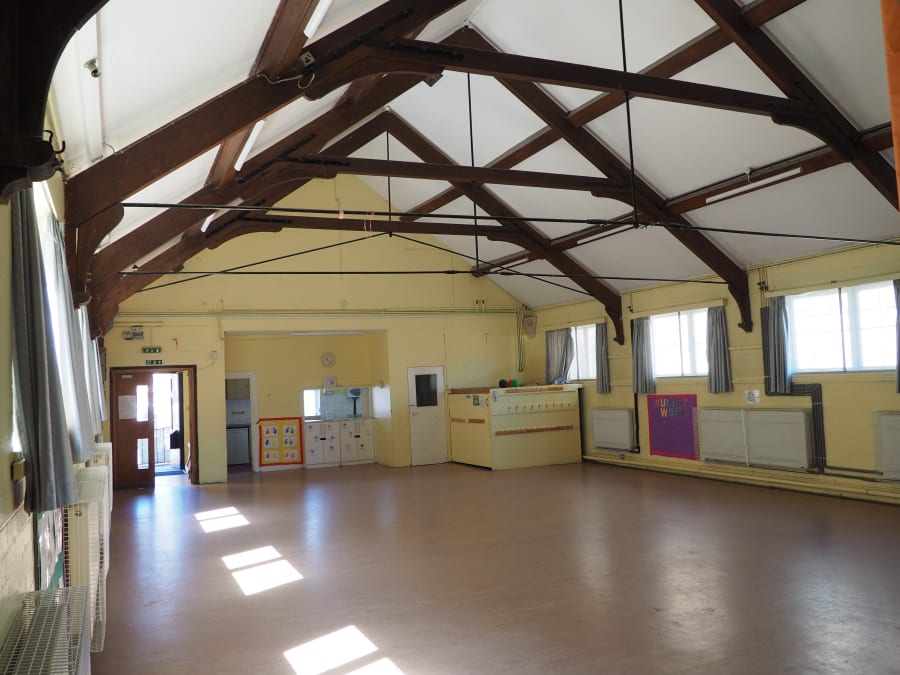 The hall is available for hire on weekday evenings, and afternoons and evenings at the weekend. There are plenty of tables and chairs and a fully equipped kitchen with a hatch opening onto the hall.