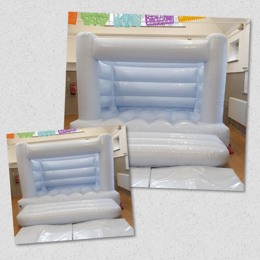 The Pastel Blue Ice H-Frame Bouncy Castle is the perfect way to brighten up an indoor celebration – compact, colourful and always a favourite with children under 8.