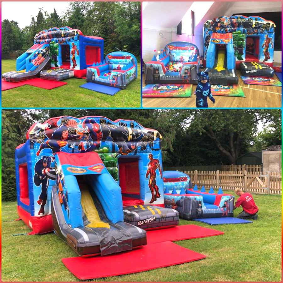 Superheroes bounce & slide & air juggler ball pond combo