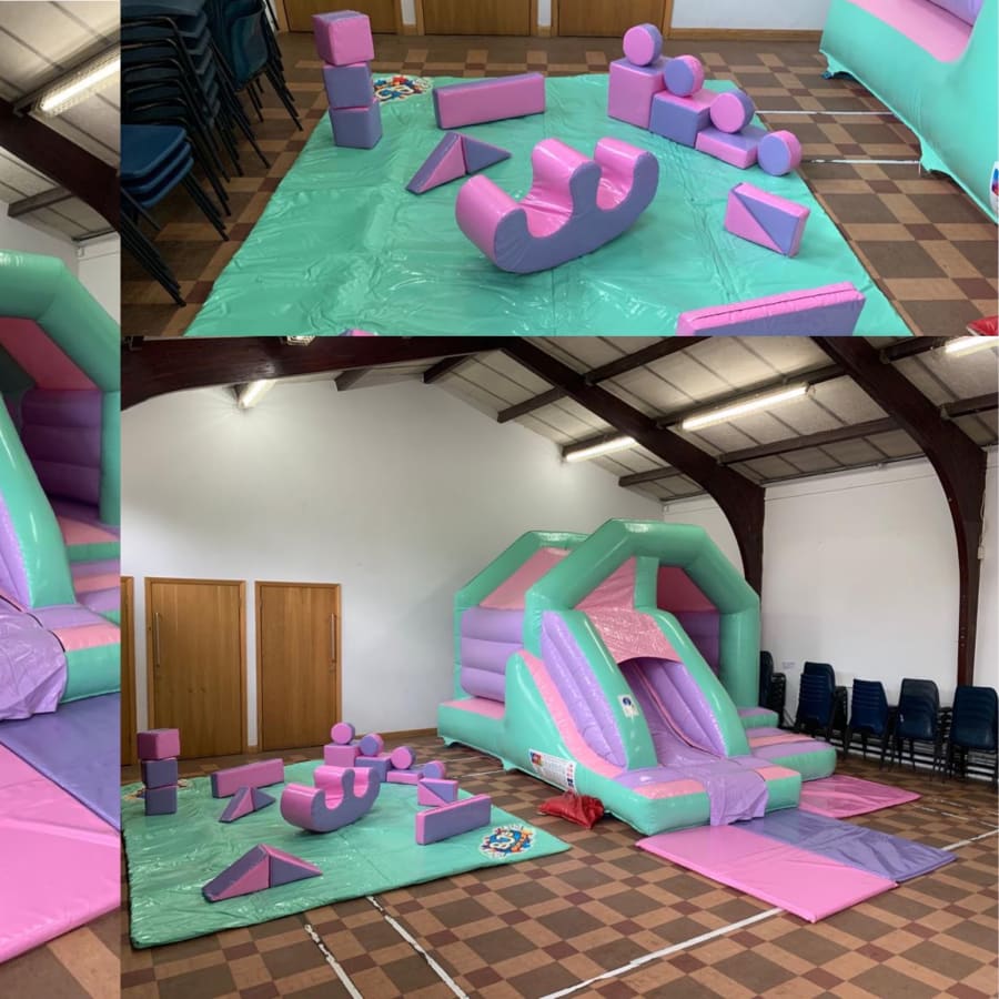 · 1 x Choice of pastel castle (family castle or bounce and slide)