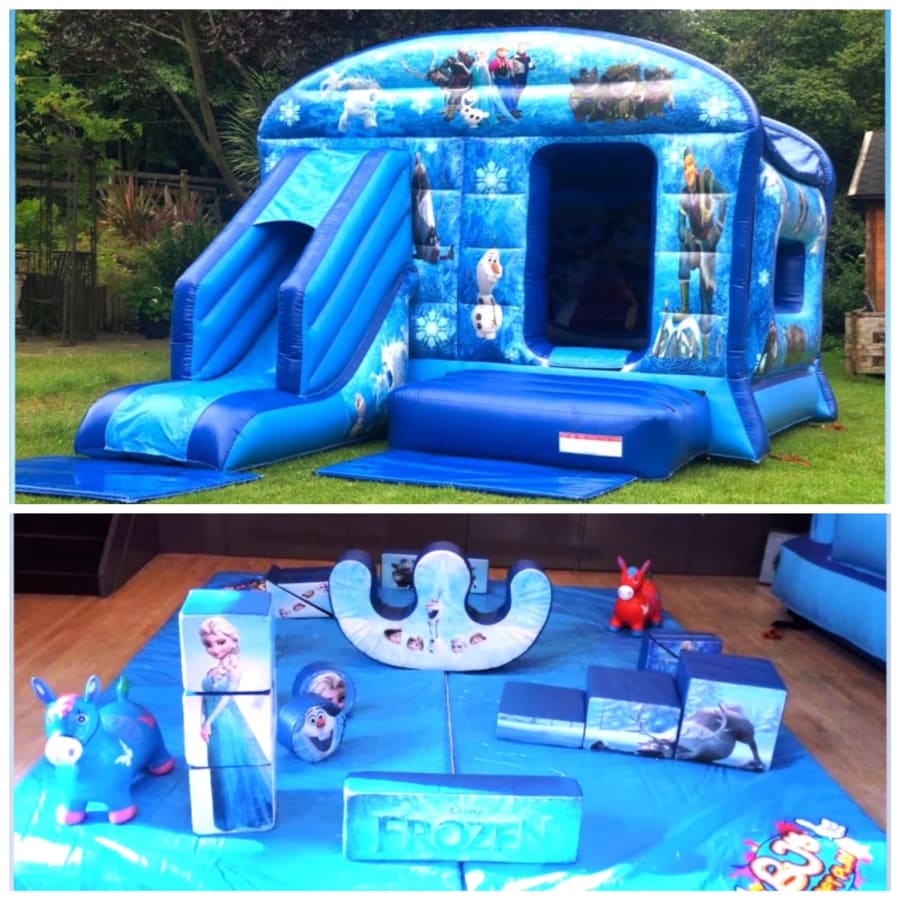 • Choice of bounce & slide (13ft W x 18ft L x 9.5ft H) OR JNR slide (12ft W x 12ft L x 8ft H) with Frozen artwork