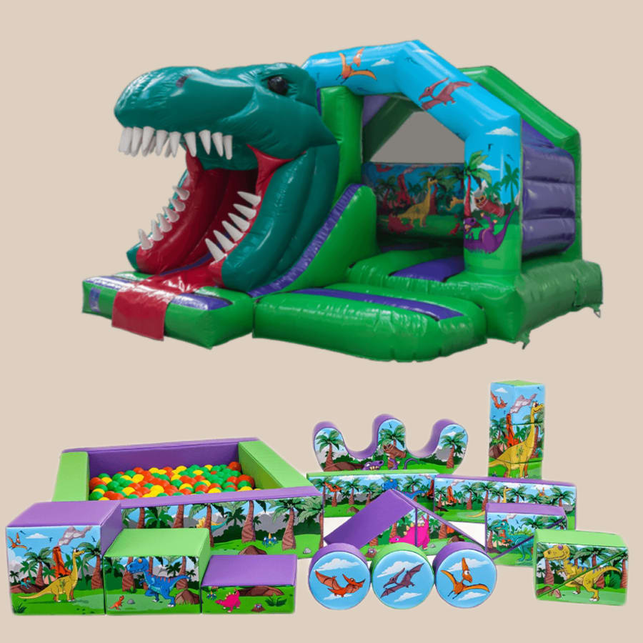 Dino set 2 soft play set with ball pond and 3D bounce and slide
