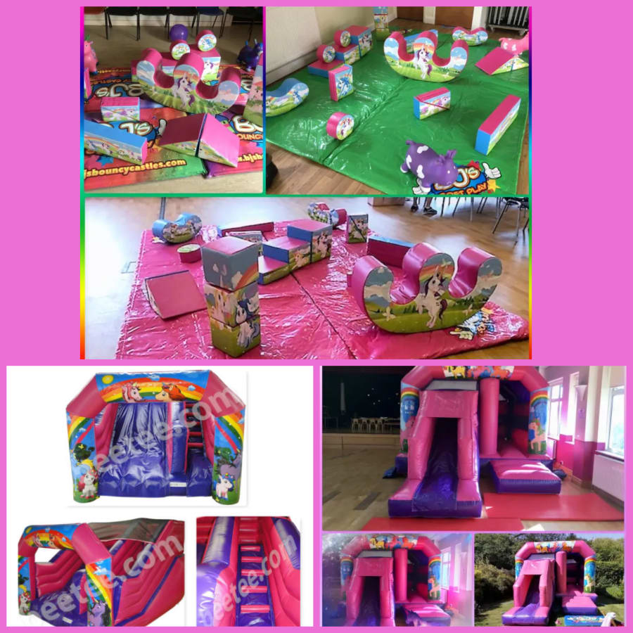 - 1 x Choice of bounce and slide or Tots Slide with Unicorns artwork