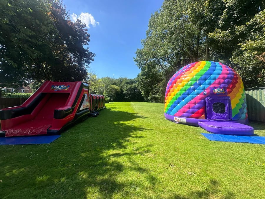 Each hire includes an electric blower, a 25m extension lead (longer available on request), secure pegs for grass setups, and a safety mat. Our friendly team takes care of both setup and takedown, so you can focus on enjoying your event in Sevenoaks.